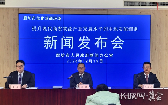 长城网·冀云客户端讯(记者 祝雪娟)12月15日,廊坊市人民政府新闻办公室召开“提升现代商贸物流产业发展水平若干用地政策措施”新闻发布会,以下是发布会实录: