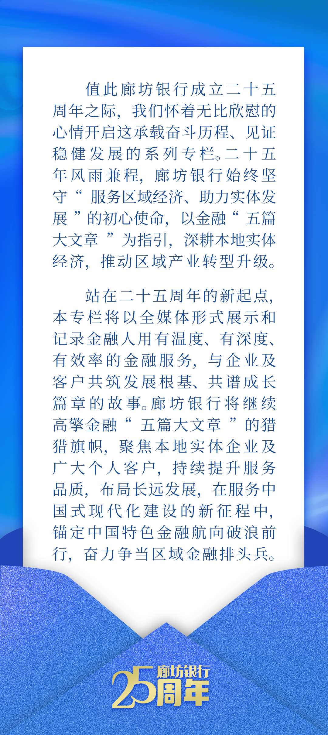 董超说:“二十五载砥砺前行,我们衷心祝愿廊坊银行在新的征程中再上层楼、再创佳绩。同福集团也将一如既往与廊坊银行携手同行、精耕本地,共创繁荣。”