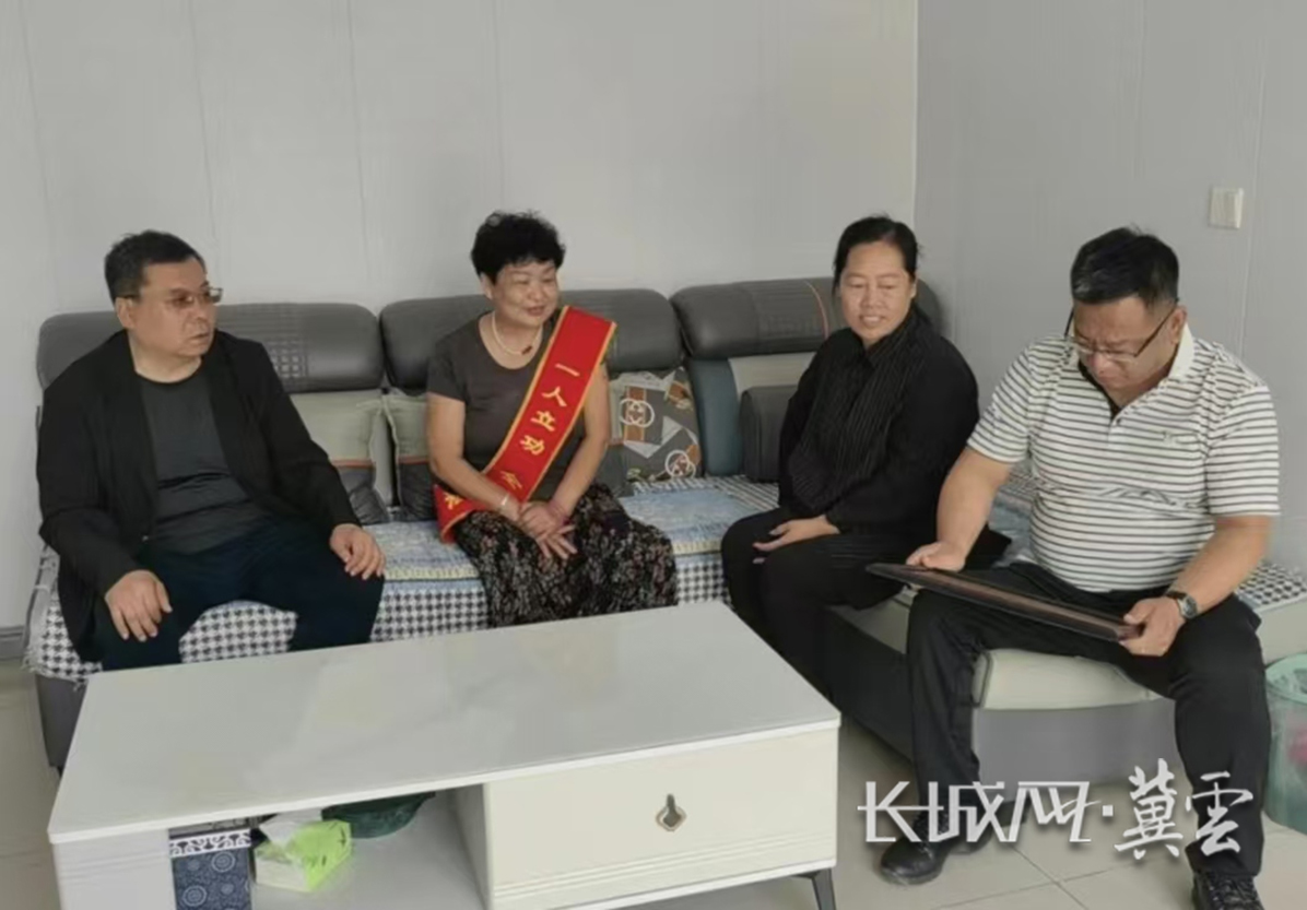 工作人员将喜报送到立功军人家属手中。中共大城县委宣传部 供图