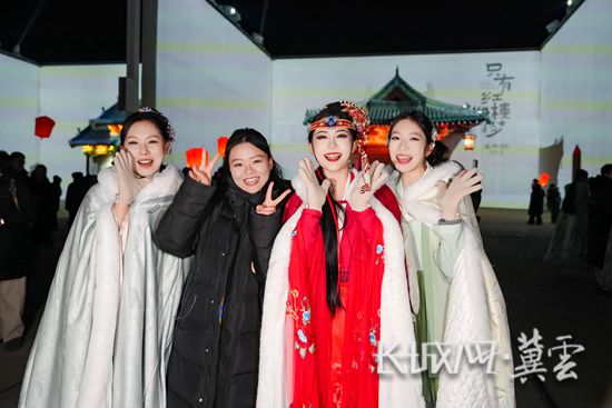 游客与只有红楼梦·戏剧幻城演员合影。长城网·冀云客户端 吕艳静 摄