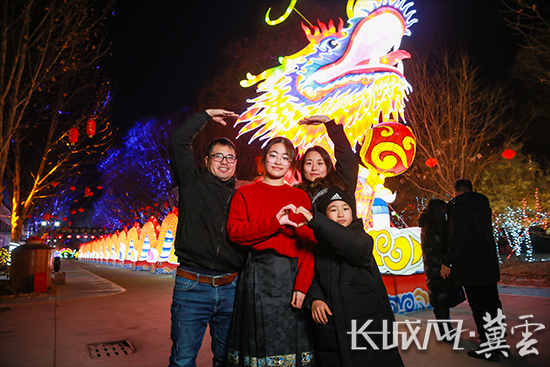 市民在花灯前打卡拍照。长城网·冀云客户端通讯员 庞趁友 摄