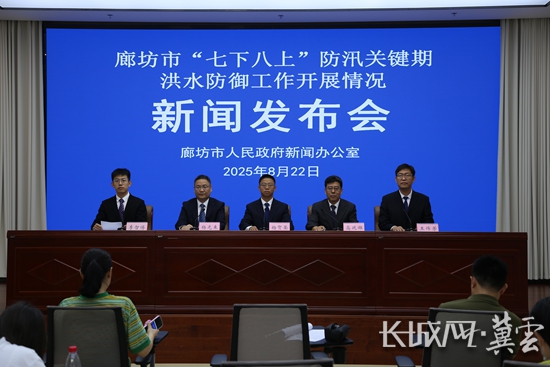 长城网·冀云客户端讯(刘婕影)8月22日,廊坊市人民政府新闻办公室召开“廊坊市2025年‘七下八上’防汛关键期洪水防御工作开展情况”新闻发布会,以下是发布会实录: