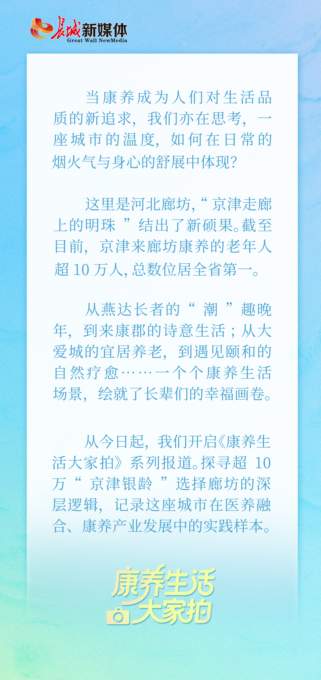 这里与北京城市副中心一河之隔,是首批京津冀养老服务协同发展试点单位、全国养老服务先进单位,也是目前国内运营较早、单体规模超大的全程化持续照护养老社区,其中95%的老人来自北京。
