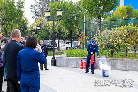 消防人员现场演示灭火器的正确使用方法。长城网·冀云客户端通讯员 李浩 摄