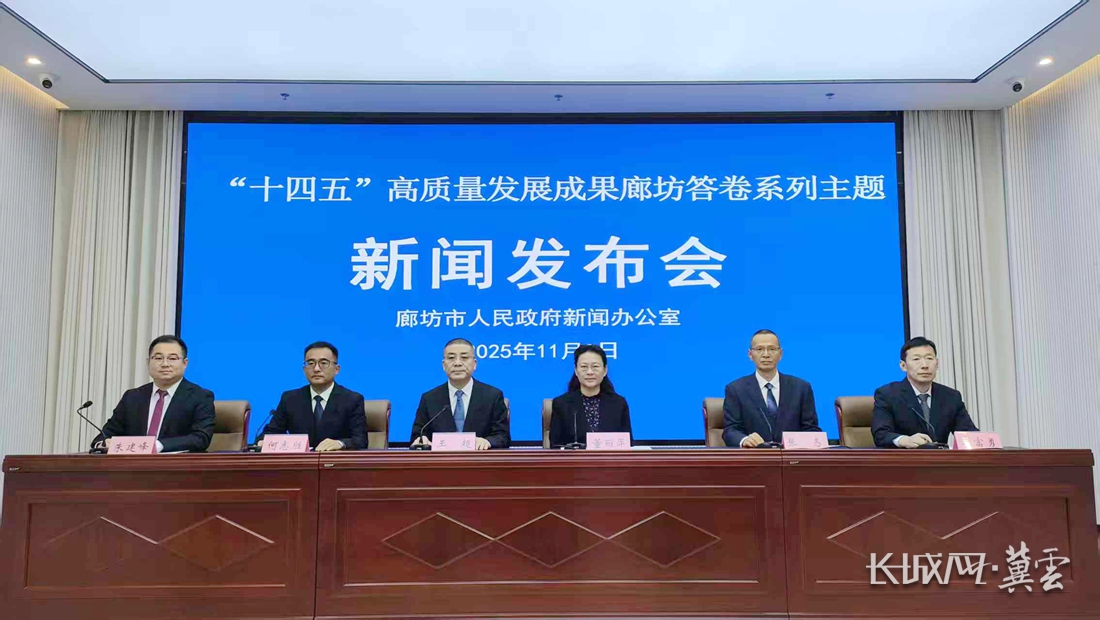长城网·冀云客户端讯(记者 祝雪娟)11月9日,廊坊市人民政府新闻办公室举办“十四五”高质量发展成果廊坊答卷系列主题新闻发布会廊坊市发展和改革委员会专场,介绍“十四五”时期廊坊市经济社会的发展成就。回望这五年,廊坊市唱响“三全一上”主旋律,凝心聚力、攻坚克难,交出了一份亮眼的经济社会发展答卷。