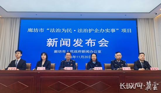 长城网·冀云客户端讯(记者 祝雪娟)11月20日,记者从廊坊市人民政府新闻办公室召开的“法治为民·法治护企办实事”项目新闻发布会上获悉,今年以来,廊坊市委依法治市办积极回应人民群众的法治需求,在全市范围广泛开展“法治为民·法治护企办实事”活动。以下是发布会实录: