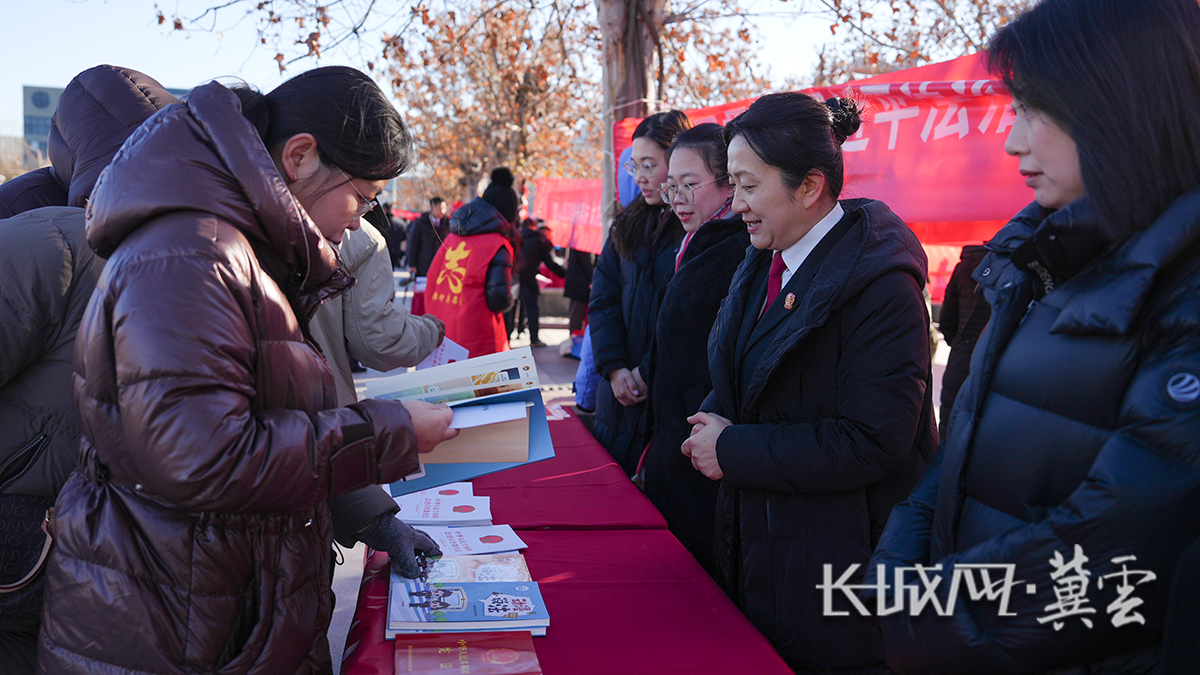 工作人员正在为市民发放宣传资料。长城网·冀云客户端记者 张航 摄