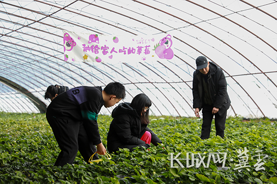 游客正在采摘草莓。通讯员 王绍蘅 摄