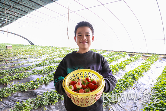 游客展示采摘的草莓。通讯员 王绍蘅 摄