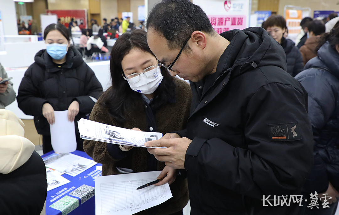 在固安县市民服务中心,求职者寻找工作岗位。通讯员 张琛 摄