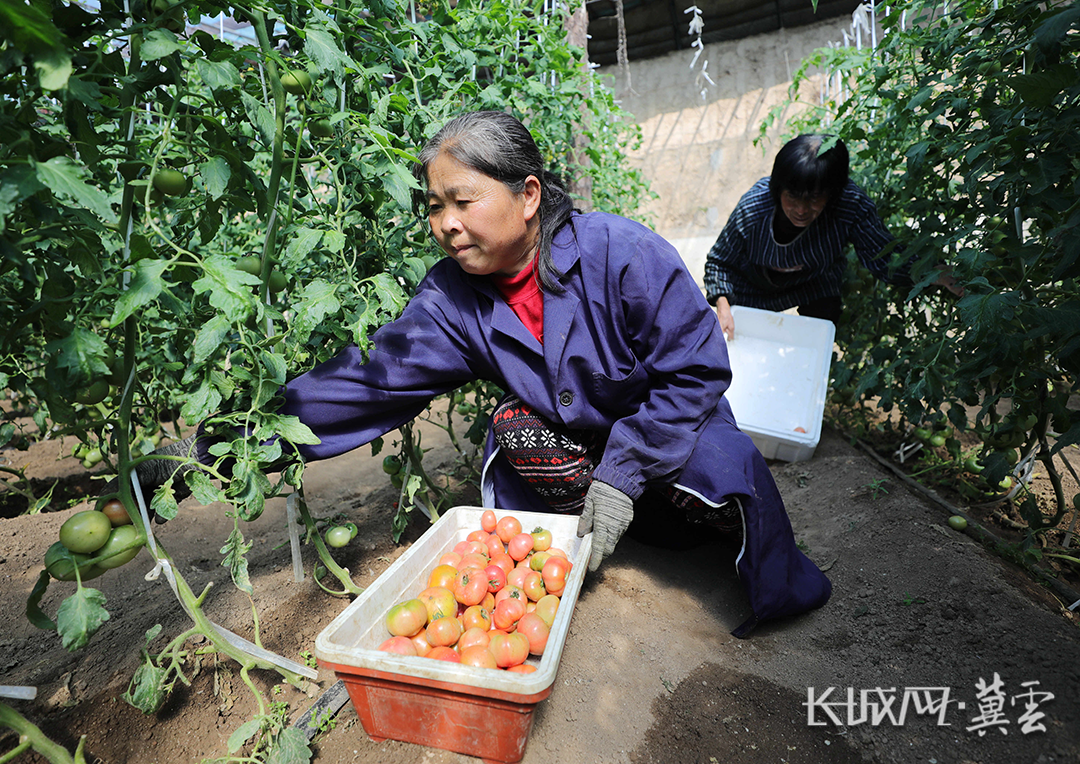 在固安县河北兴芦农业科技集团有限公司,工人正在采摘西红柿。通讯员 吴迪 摄