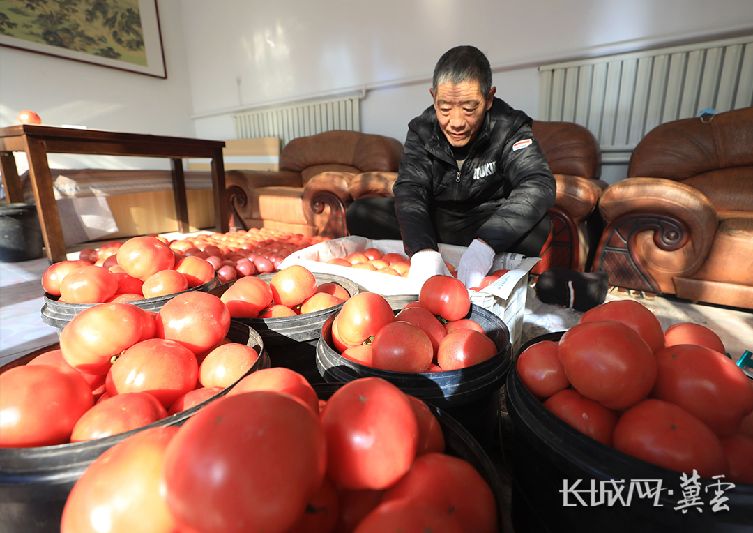 在固安县牛驼镇霍辛庄村农户家,农户正在分装西红柿。通讯员 陈放 摄