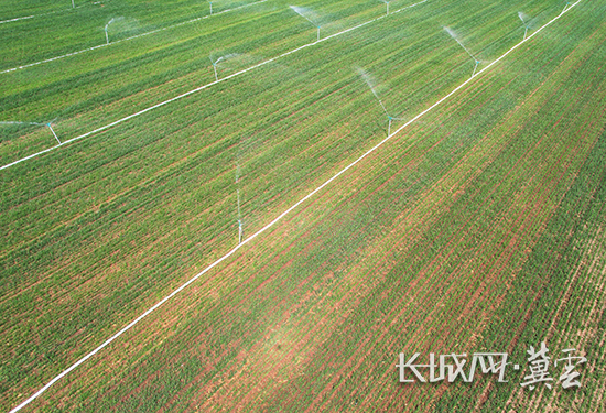 农民利用喷灌设备进行灌溉。通讯员 金胜利 摄